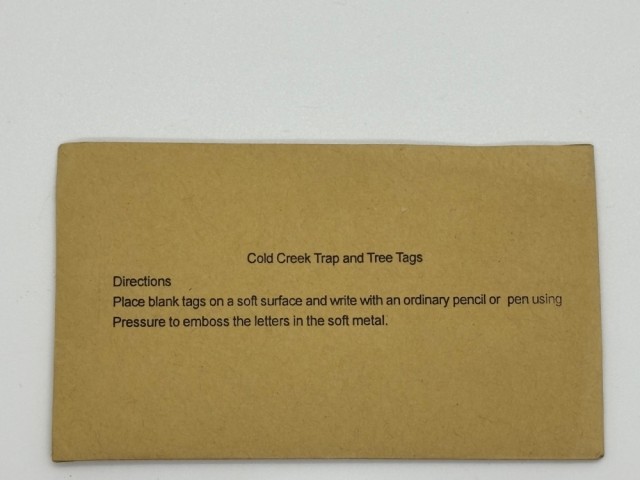 Navnlapper i sink. I denne pakken får du med 25 navnlapper i sink som du kan feste på fellene dine. Du må selv skrive hva du ønsker skal stå på dem. Produsent er Cold Creek Trap And Tree Tags. NOK69,00 inkl. mva. På lager Antall Kjøp Ønskeliste Del dette Produktinfo Produktanmeldelser (0) I Norge er det lovpålagt å merke fellene med navn og adresse. Vi anbefaler også å ta med telefonnummer. Våre sinkmerker er svært enkle å skrive på med blyant eller en annen spiss gjenstand. Ståltråd til å feste navnlappen følger med. Skriv en produktanmeldelse og del dine erfaringer med dette produktet med andre kunder. Email Navn Din vurdering? 1 star 2 star 3 star 4 star 5 star 6 star Oppgi en tittel for anmeldelsen din Skriv inn produktanmeldelsen i feltet under